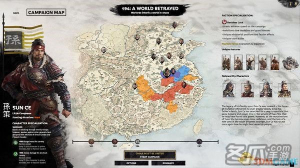 战役开始时,孙策同他的父亲孙坚一样依附于袁术。扮演孙策的玩家要面对一系列由此产生的抉择:是忠于袁术,还是自立一派?要想一统江东,孙策仍然任重道远。