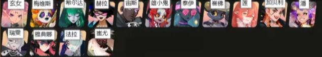 T1:玄女、梅维斯、希尔达、赫拉、宙斯、雄小鬼、泰伊、催佛、莲、加贝利、潘、瑞雯、雅典娜、法拉、蚩尤